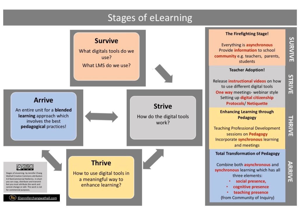 She has devised a 4 stage model for eLearning which I’ve found particularly helpful on reflecting on my journey with online learning so far. After seven weeks of virtual teaching and learning, I think it is a brilliant model to share with teachers and helps articulate the emotional, practical, and pedagogical impact of online learning.